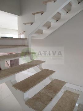 - Pé-direito duplo com escada de design personalizado (Escada + Vestíbulo) em estrutura metálica com pintura eletrostática branca e pisada em mármore;