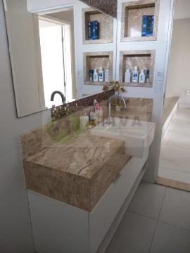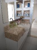 - Banheiros com bancadas e nichos em pedra, marcenaria planejada e louças e metais DECA;